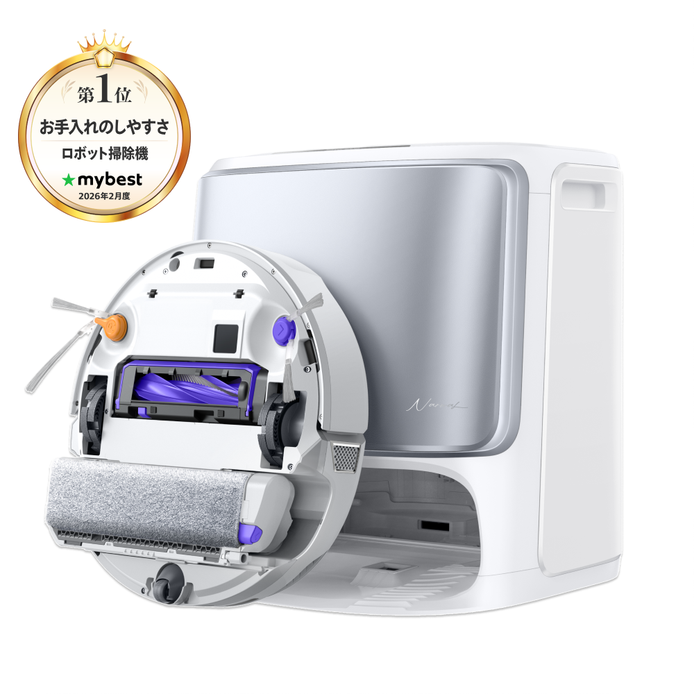 ・メンテナンス:(国際認証済み)絡まりゼロブラシ × 全自動ベースステーション