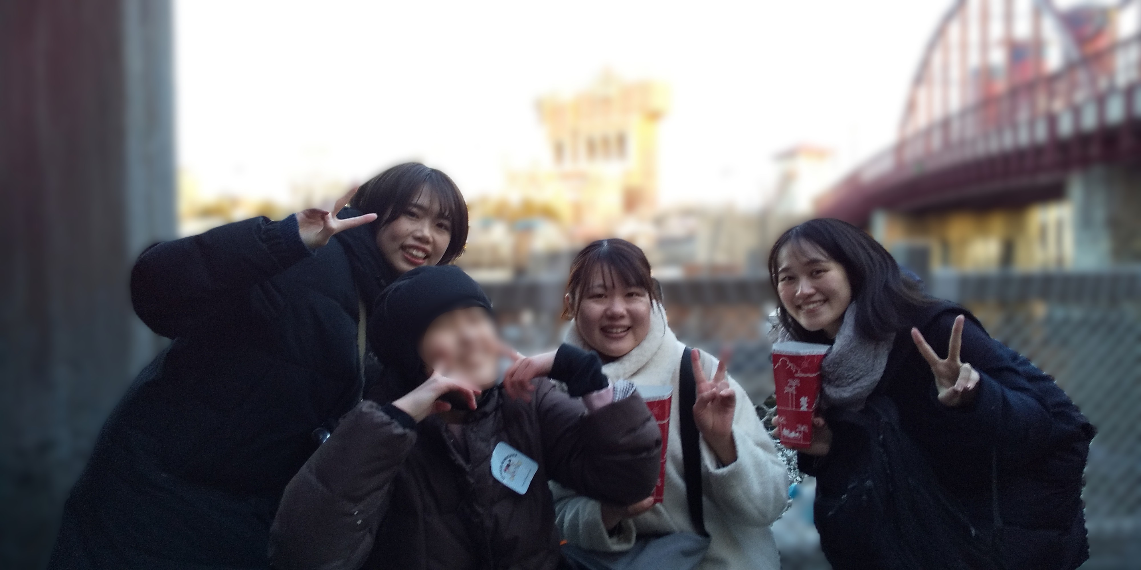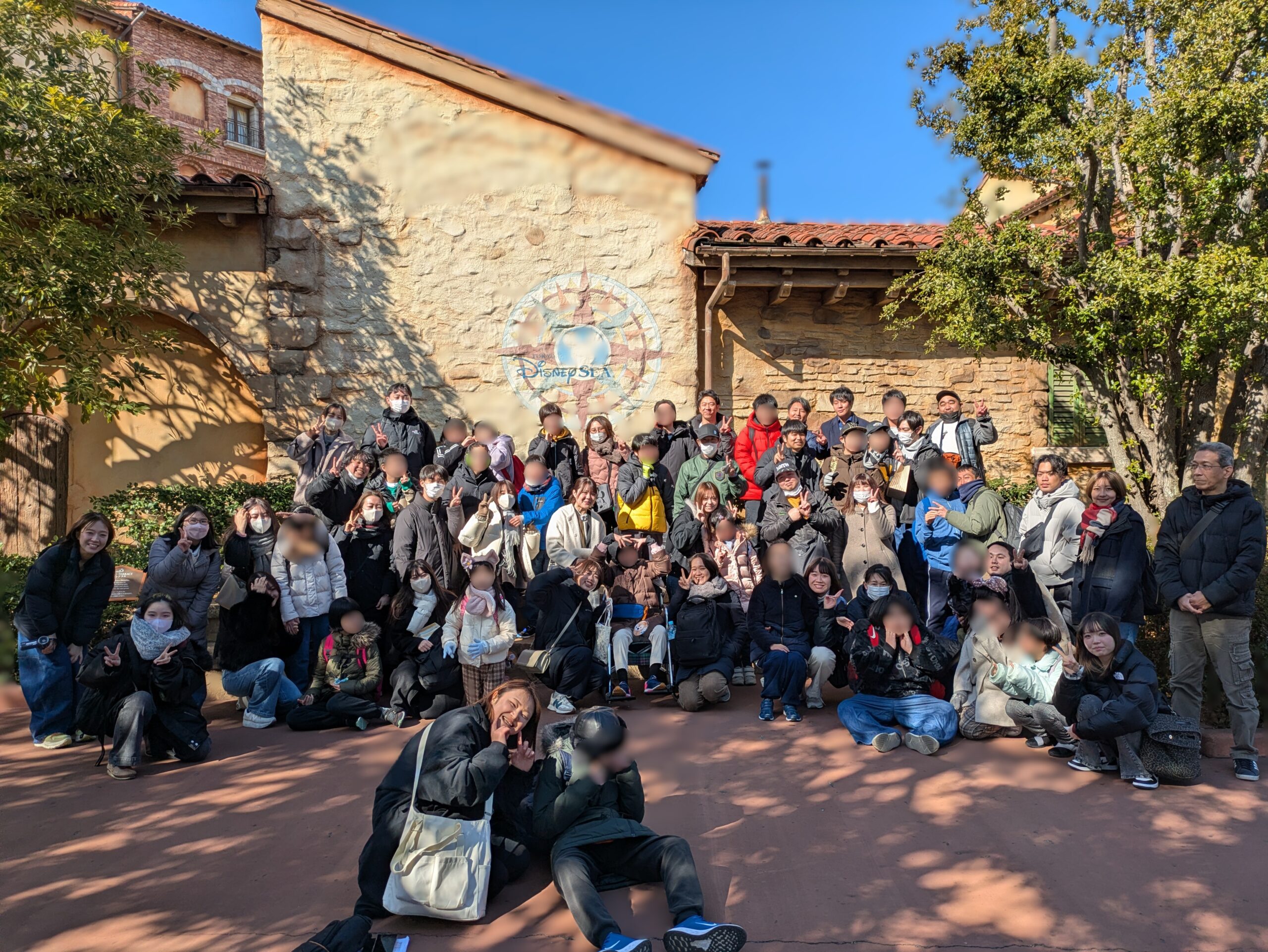 園内を歩き、目当てのアトラクションを楽しみながら、レストランでの食事やお土産選びなど様々な体験を通じて1日を満喫した後、最後は全員最高の笑顔で写真を撮り、素敵な1日を締めくくりました。