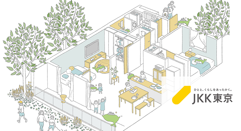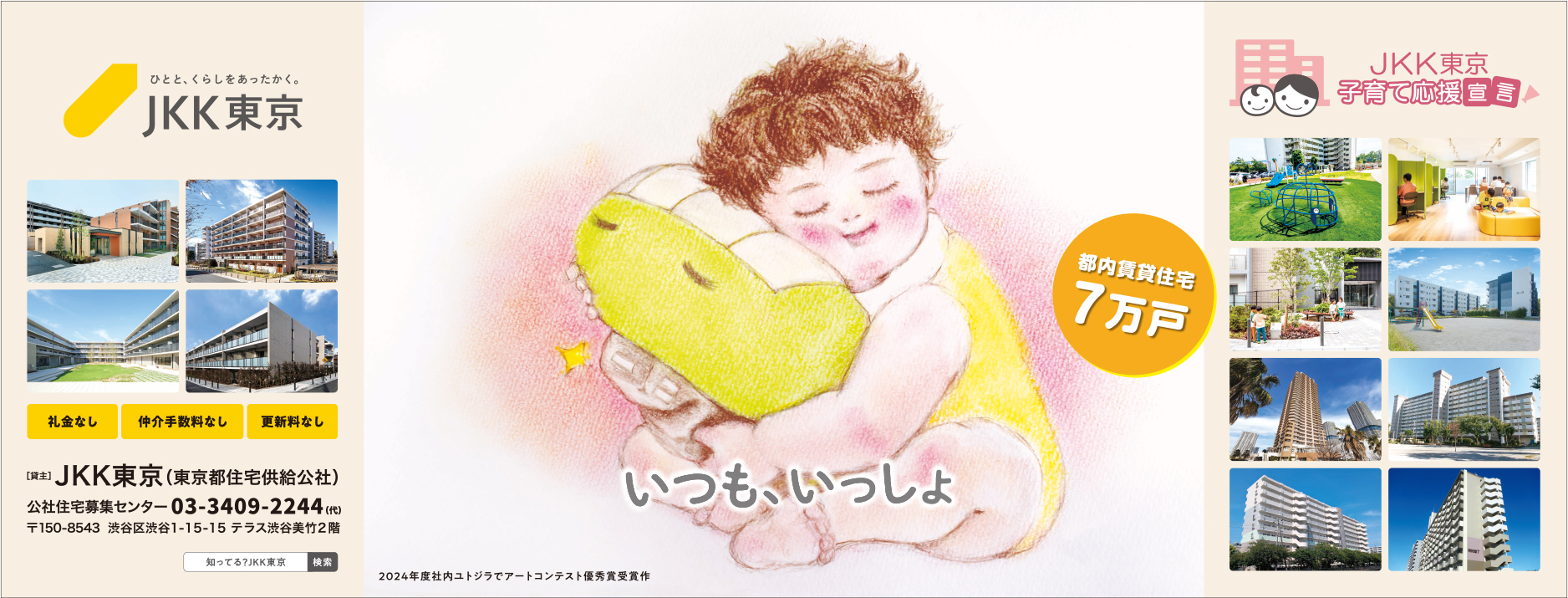 今回のメッセージ「いつも、いっしょ」には、イメージキャラクター「ユトジラ」と子どもが寄り添う姿を通して、JKKがお住まいの方の毎日にそっと寄り添い、住まいという「場所」だけでなく、そこで育まれる「くらし」そのものをあたたかく支えていきたいという思いを込めています。