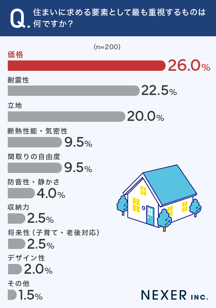 ■26.0%が、住まいに最も重視する要素として「価格」と回答