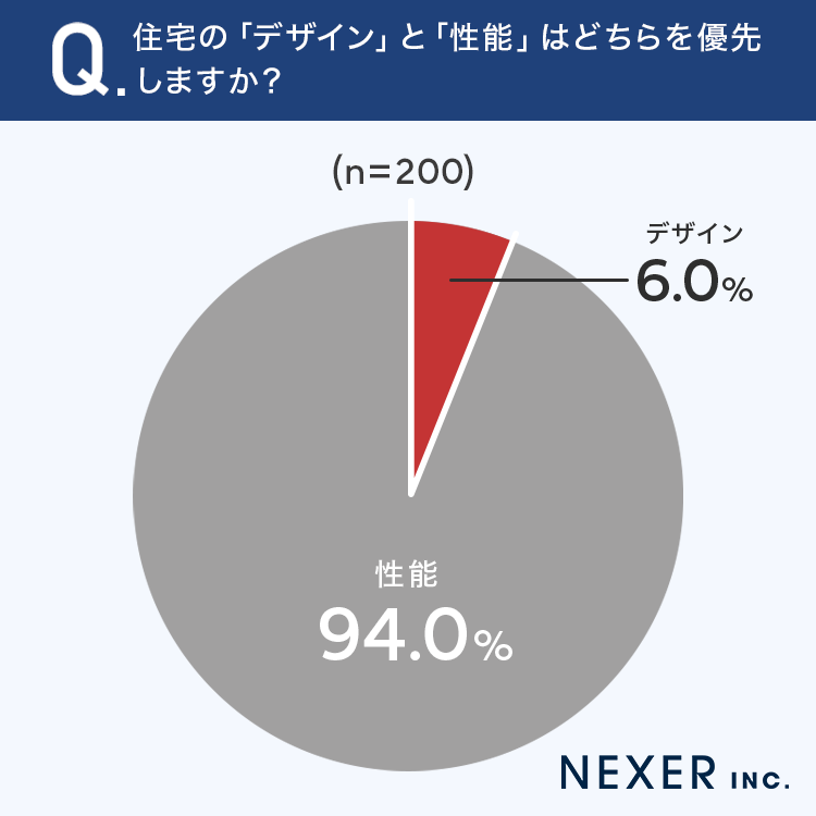 ■94.0%が、住宅は「性能」を優先すると回答