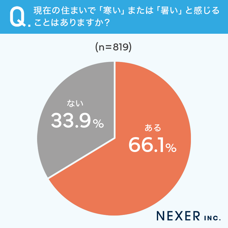 ■66.1%が、現在の住まいで「寒いまたは暑いと感じることがある」と回答