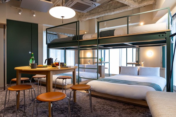 STAND HOTEL Shimbashiではこのギャップを埋めるべく、全室5名以上の客室を設計。グループ旅行向けの「STAND Shimbashi BUNK6」(二段ベッド仕様)とファミリー旅行向けの「STAND Shimbashi 5」の2タイプを用意しています。