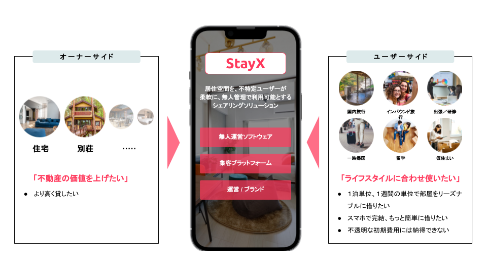 「StayX」とは、ソフトウェアを主軸に、空間の価値を最大化するソリューションです。