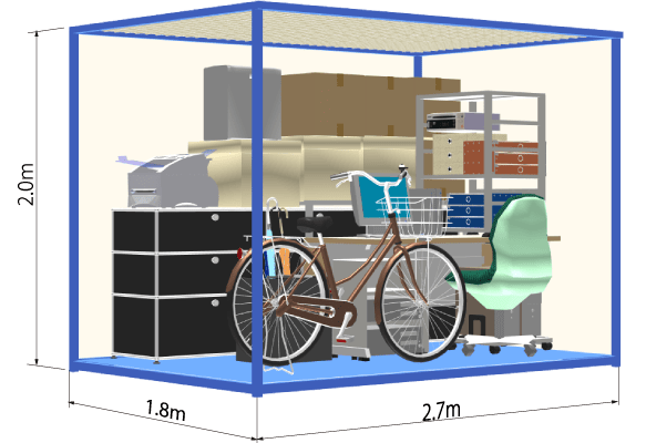 一般的なサイズの段ボールで、約72〜144個分の大きさとなり、かなり大きめの広さです。洗濯機や自転車などの大きめの家具・家電や、オフィス用品・商品在庫などの保管場所としてもご利用いただけます。