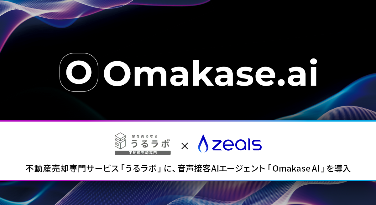 接客AIエージェントを提供する株式会社ZEALS(所在地:東京都目黒区、代表取締役:清水正大、以下「ジールス」)は、喜正産業株式会社(所在地:東京都江戸川区、代表取締役:伊東 正紀、以下「喜正産業」)が運営する不動産売却専門サービス「うるラボ」に、音声AIエージェント「Omakase AI」を導入したことをお知らせいたします。