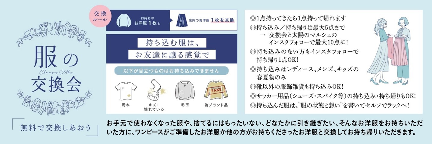 服の交換会 = レディース・メンズ・キッズの春夏用衣類、服飾雑貨等