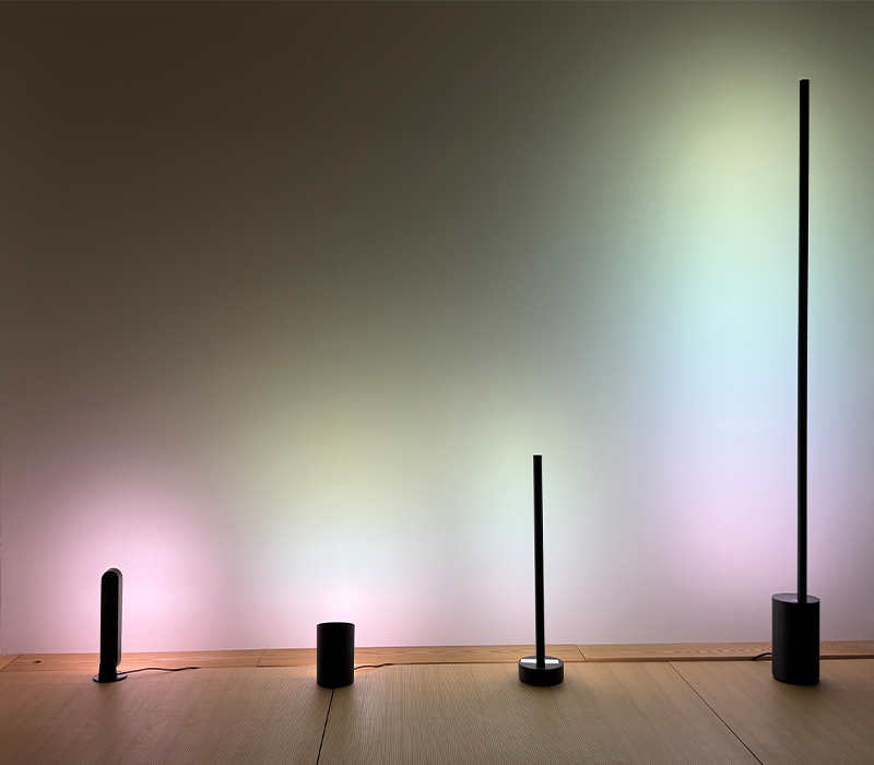 左より、ライトバー(単色発光)/ウォールウォッシャー/テーブルランプ/フロアライト
