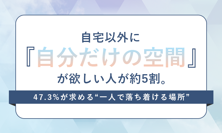 半数以上の人が、自宅とは別に自分だけの居場所を求めていることになります。日々の暮らしのなかで、ふと「一人になれる場所があったら」と思う瞬間は、決して珍しいことではないようです。
