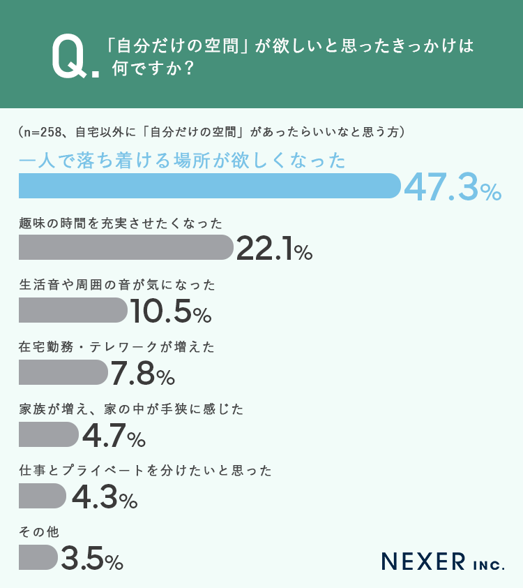 ■47.3%が「一人で落ち着ける場所が欲しくなった」ことがきっかけと回答