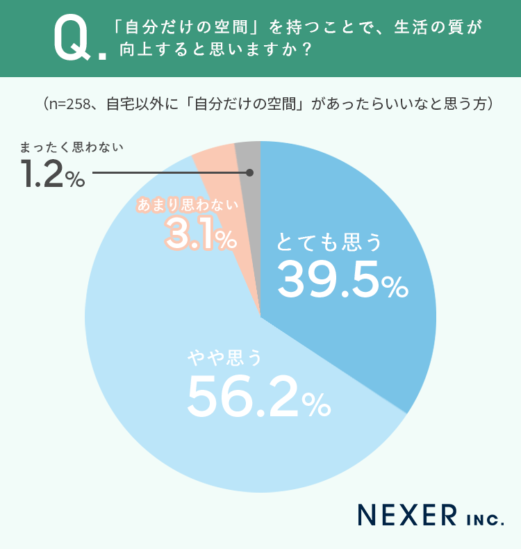 最後に「自分だけの空間」を持つことで生活の質が向上すると思うかを聞いてみました。