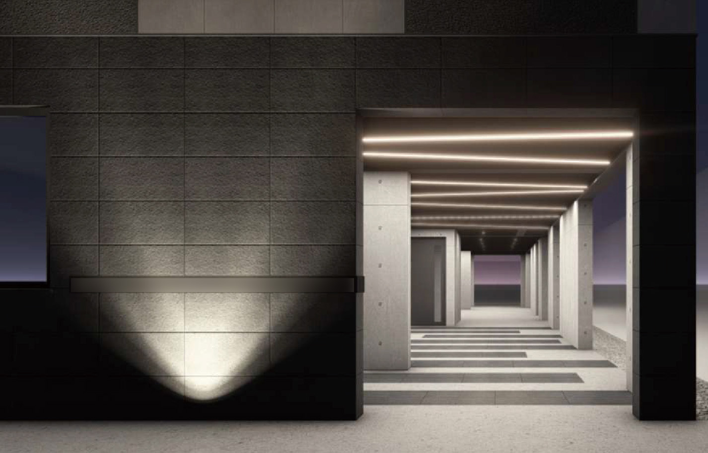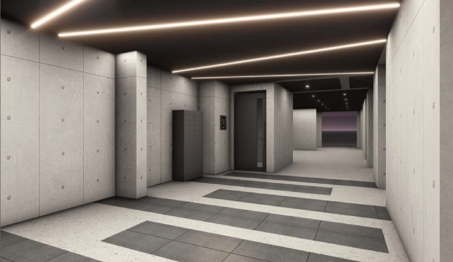 外観および共用部は、コンクリート打ち放しを基調としたスタイリッシュなデザインとし、WRC造ならではの高い耐久性と将来的な資産価値を備えた建物となっています。住戸は1LDK・2LDKで構成され、単身者から少人数世帯まで、幅広い入居ニーズを想定しています。