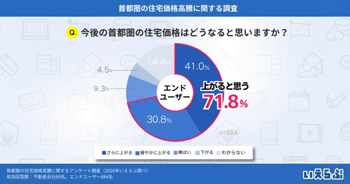 不動産業界特化のDX支援サービスを展開する、株式会社いえらぶGROUP(本社:東京都新宿区、代表取締役:岩名泰介、以下「いえらぶGROUP」)は、不動産会社・エンドユーザーに対して「首都圏の住宅価格高騰に関するアンケート調査」を実施しました。有効回答953件の調査結果を発表します。