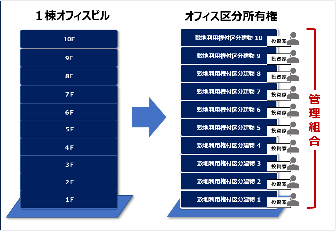 ビルをフロアごとに分割登記し、個別に販売する。