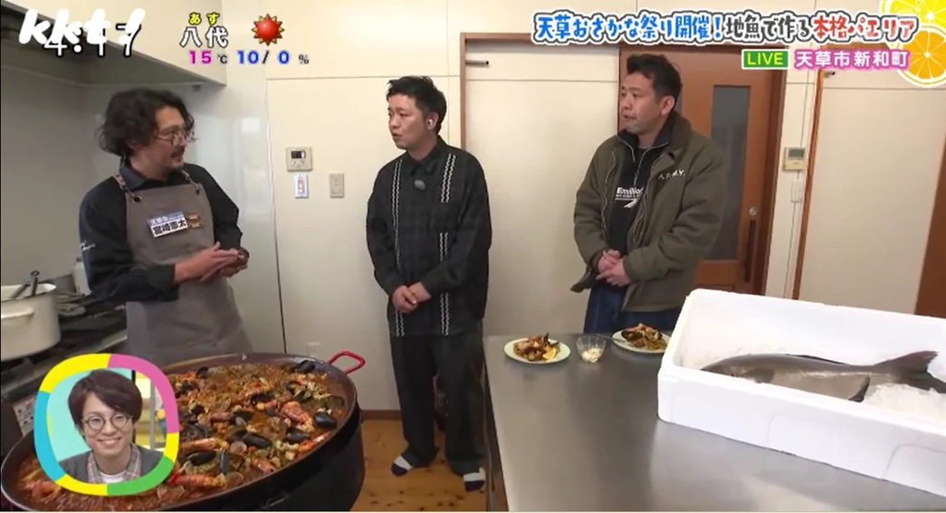 「天草お魚まつり」では天草の地魚(未利用魚/イスズミ)を使った大鍋で炊く魚介パエリアを100食分販売されました。