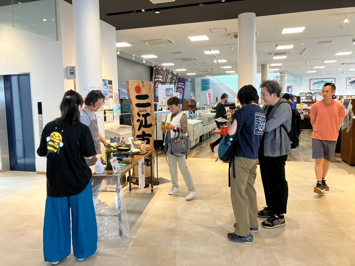 道の駅 天草市イルカセンターでのイベントの様子(みつばちラジオの生放送でも流れる調理実演)