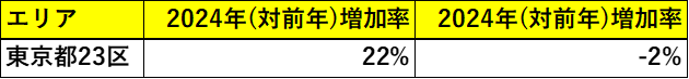 次に、再販マンションの増加率をエリア別に見ていくと、東京23区の中でも異なる動きが見えてきます。