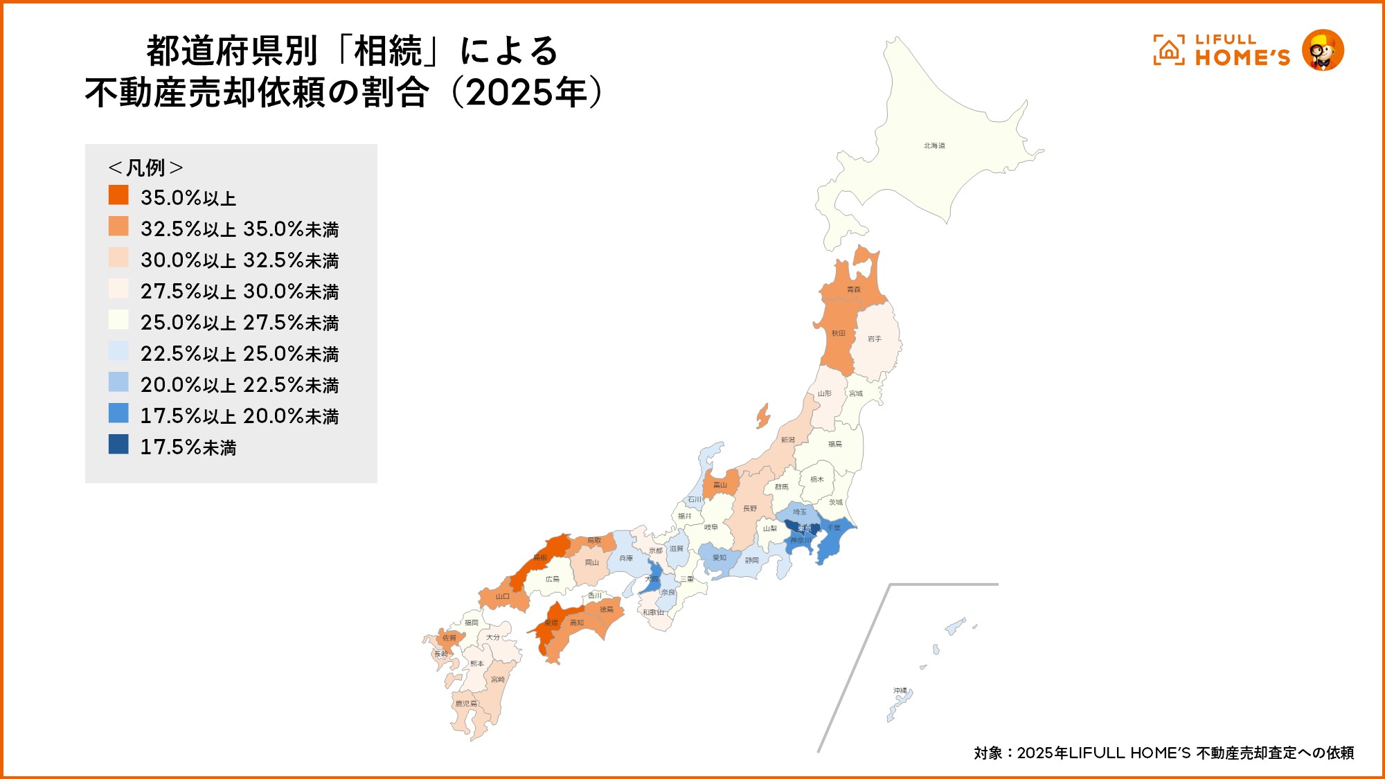 事業を通して社会課題解決に取り組む、株式会社LIFULL(本社:東京都千代田区、代表取締役社長:伊東祐司、東証プライム:2120)は、2025年1月から12月までのLIFULL HOME’Sにおける「相続」を理由とした不動産売却の依頼データを基に、都道府県別の傾向を調査いたしました。