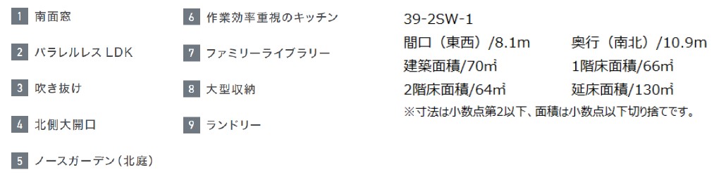 【参考資料】コンセプトモデル「39-2SW-1」39坪 南入りタイプ