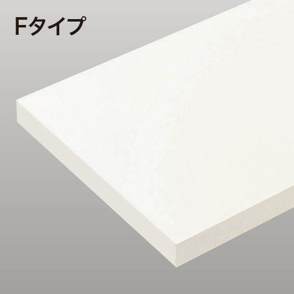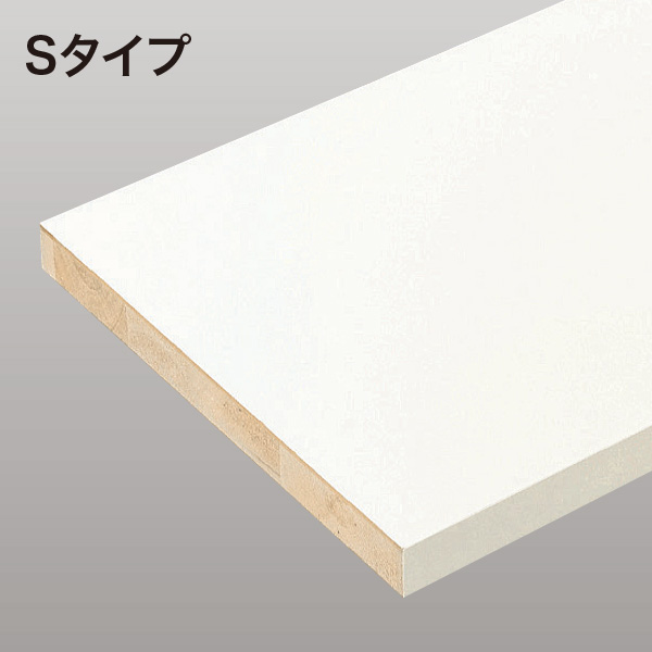 背壁のみに設置するクローゼットなどの内部収納に最適。現場でのエッジテープ貼りが不要な棚板です。