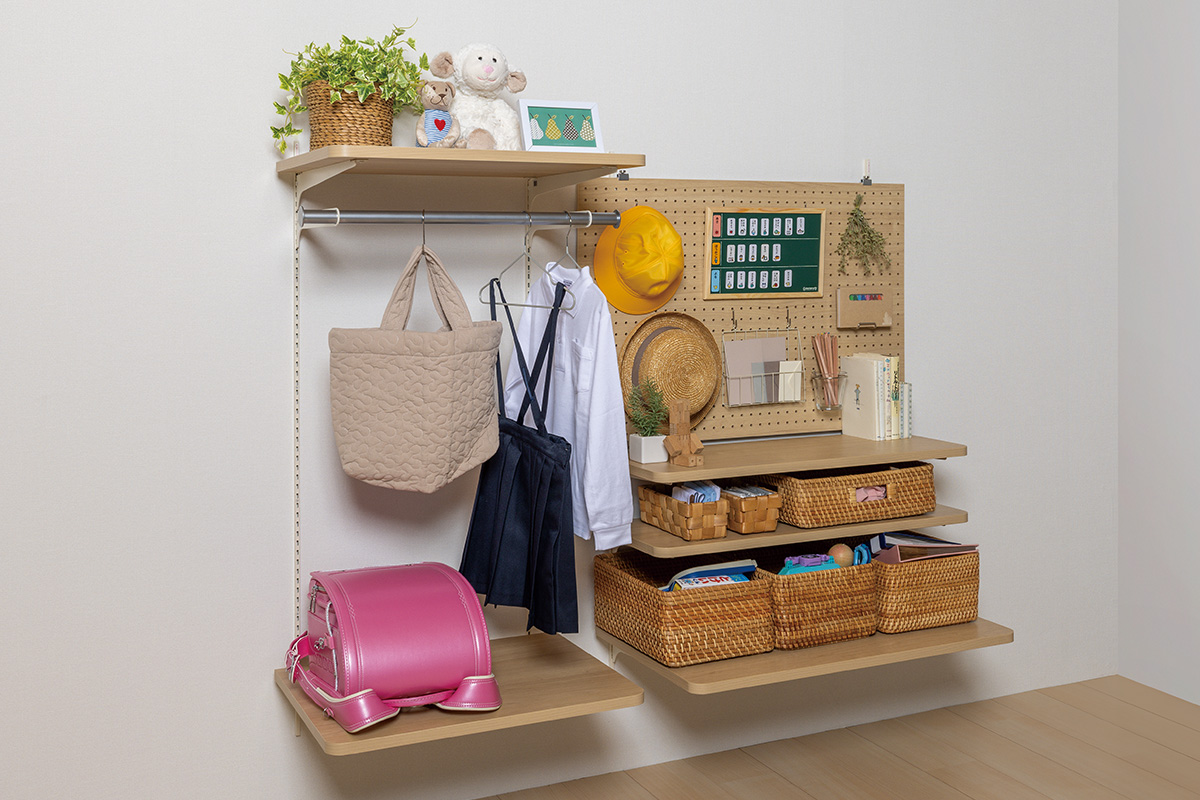 ランドセルクロークのオープン収納に