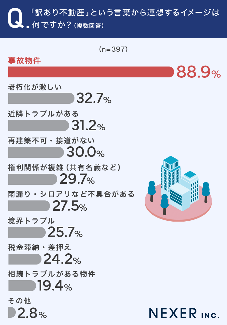 質問3:「訳あり不動産」という言葉から連想するイメージは何ですか?(複数回答)