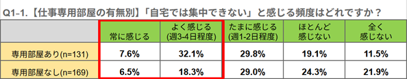 専用の仕事部屋があっても39.7%が「自宅では集中できない」と頻繁に感じている