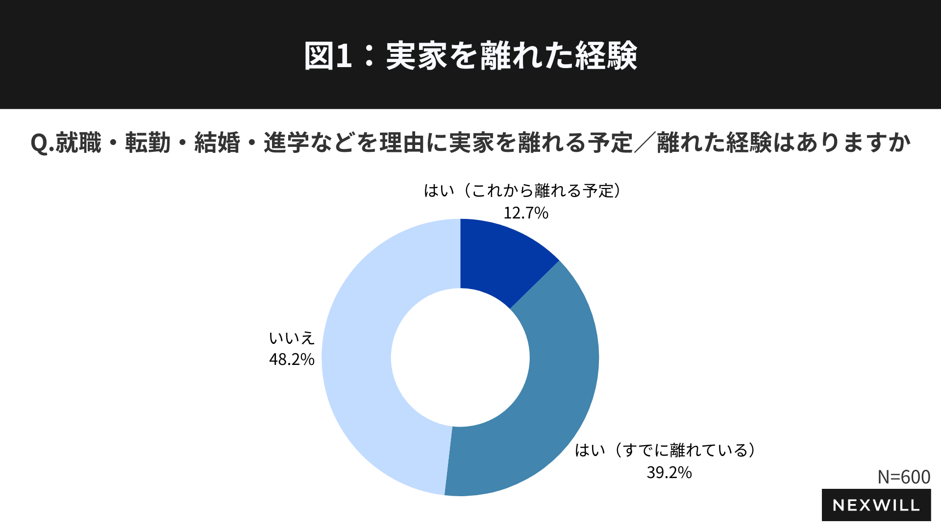 実家じまいなど相続に伴う不動産課題を”ワンストップで対応”する訳あり不動産買取事業「ワケガイ」を展開する株式会社ネクスウィル(本社:東京都港区新橋 代表取締役:丸岡 智幸)は、全国の20歳以上49歳以下の男女600名を対象に、新生活に伴う実家の居住状況や将来不安に関する実態調査を実施しました。