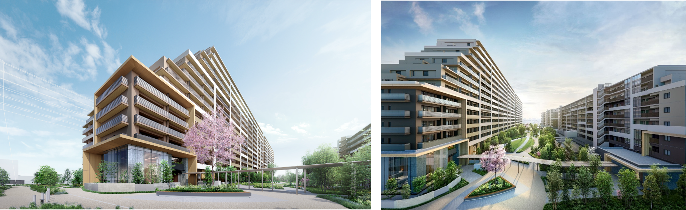 また、全4棟・738戸、2~4LDKの多様なプランが揃う専有部に加えて、多彩な共用施設による充実した暮らしを提供いたします。各世帯に寄り添った質の高い居住環境と周辺地域と連携しながら憩いと賑わいを提供する本物件は、1期が2025年8月に着工、2028年3月に引渡予定です。