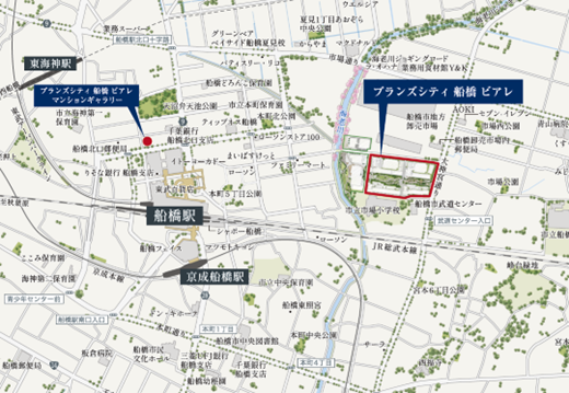 本物件は、船橋駅東側にある船橋市地方卸売市場に隣接したエリアに位置し、JR総武線「船橋」駅、東武アーバンパークライン「船橋」駅徒歩9~11分、京成本線「京成船橋」駅徒歩11~13分となります。JR総武線「船橋」駅にはジェイアール東日本都市開発が運営するショッピングセンター「シャポー船橋」が直結しているほか、船橋市立市場小学校に隣接しており、ファミリー層を中心に高い利便性が確保されております。