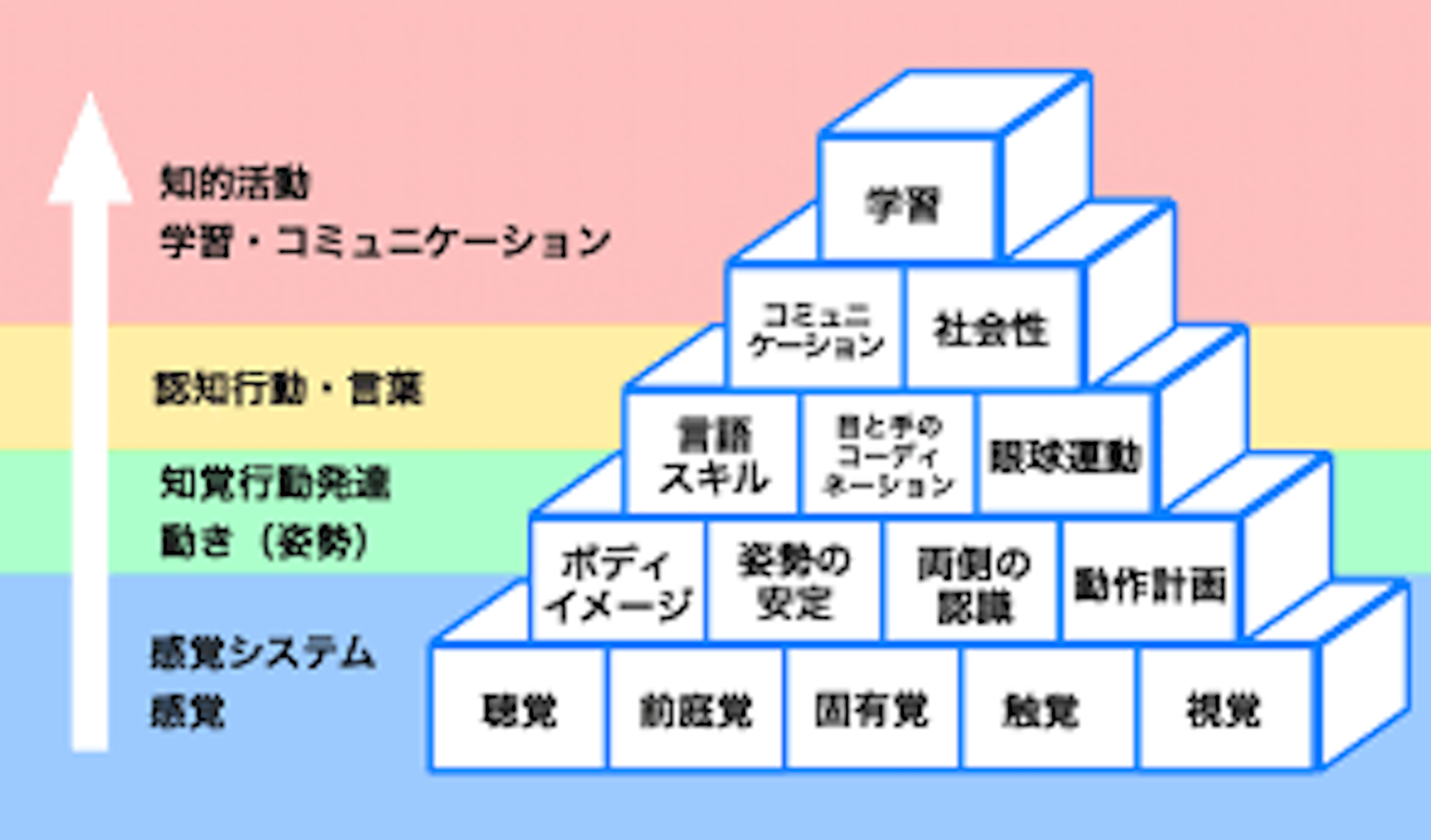 脳が「見る・聞く・触る」などの感覚情報を 整理し、姿勢や集中、感情をコントロールする力。 特に”前庭感覚(バランス)”と”固有感覚(力加減)”は、 乳幼児期の発達の土台となります。