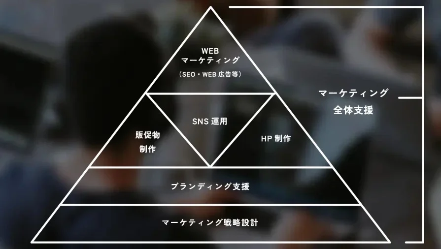 事業内容:広告制作事業、広告運用事業、事業承継支援事業、AI活用支援事業、SNS運用事業、WEB制作事業