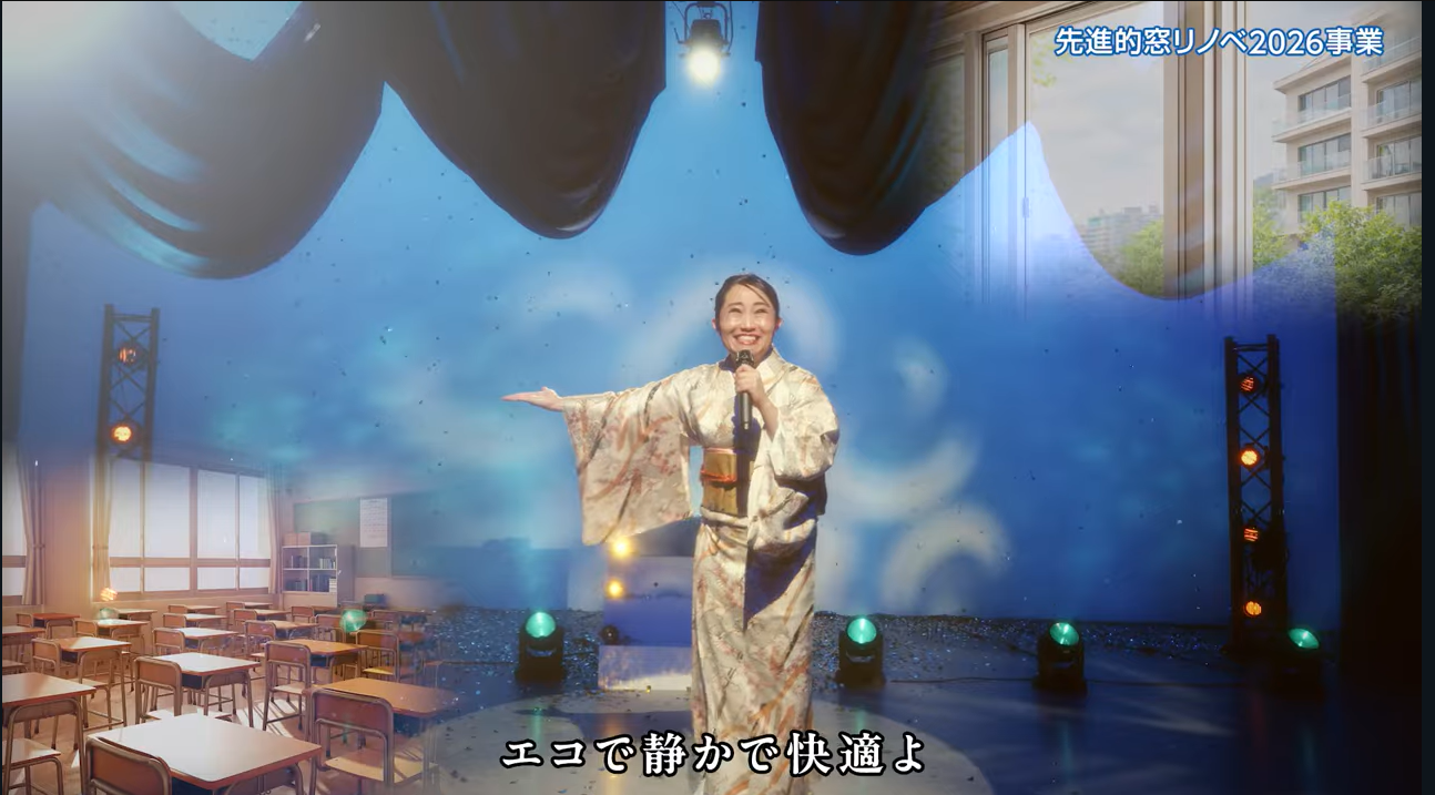 情熱的な歌声で“窓リフォームの大切さ”を歌い上げるというユニークな設定で、窓の断熱性能向上や省エネ効果をコミカルに表現しています。