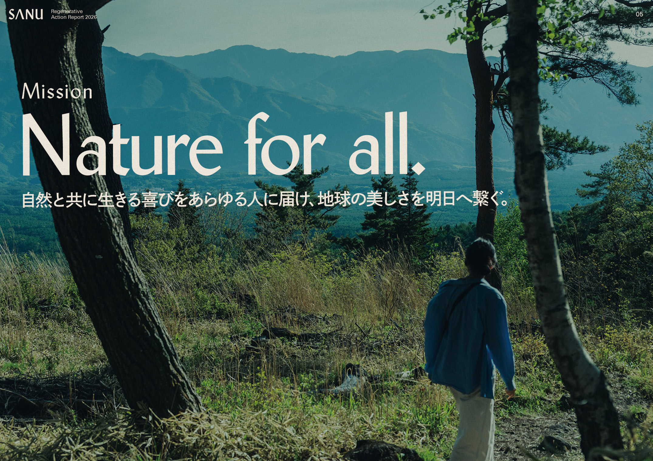 その葛藤に正面から向きあった結果生まれたのが、SANUの新しいコーポレートミッションであり、本「リジェネラティブ・アクション・レポート 2026」です。
