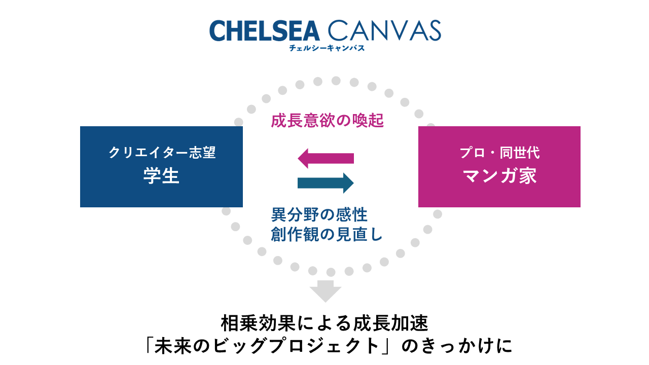 LEGIKAでは、チェルシーキャンバスの取り組みを通じて、マンガ家・学生双方の相乗効果による成長の加速を促していきます。
