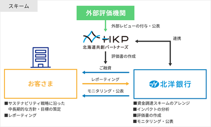本ファイナンスにおけるインパクト評価およびモニタリングは、株式会社北洋銀行とグループ会社である北海道共創パートナーズで共同して実施され、株式会社格付投資情報センター(R&I)より第三者意見※1を取得することで客観性を担保します。