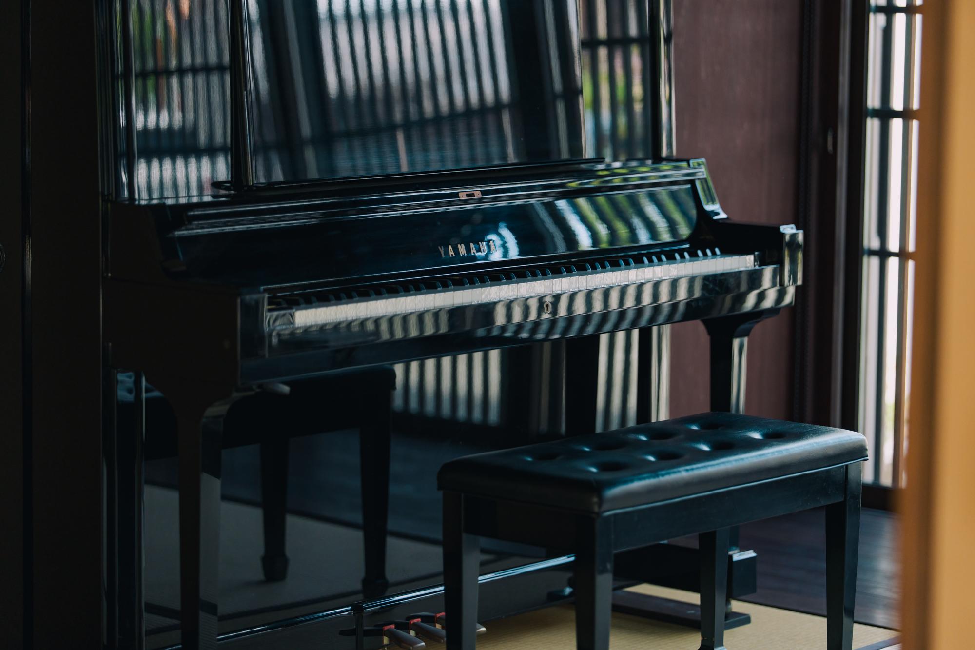リビングには調律済みのアップライトピアノを設置。家族や友人とのミニコンサートなど、自由な過ごし方が可能です。