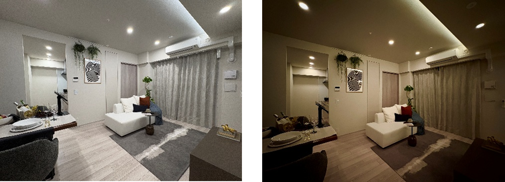 3.カスタムライティング :仕事に集中するためのクールな光や、食事やくつろぎの時間の温か