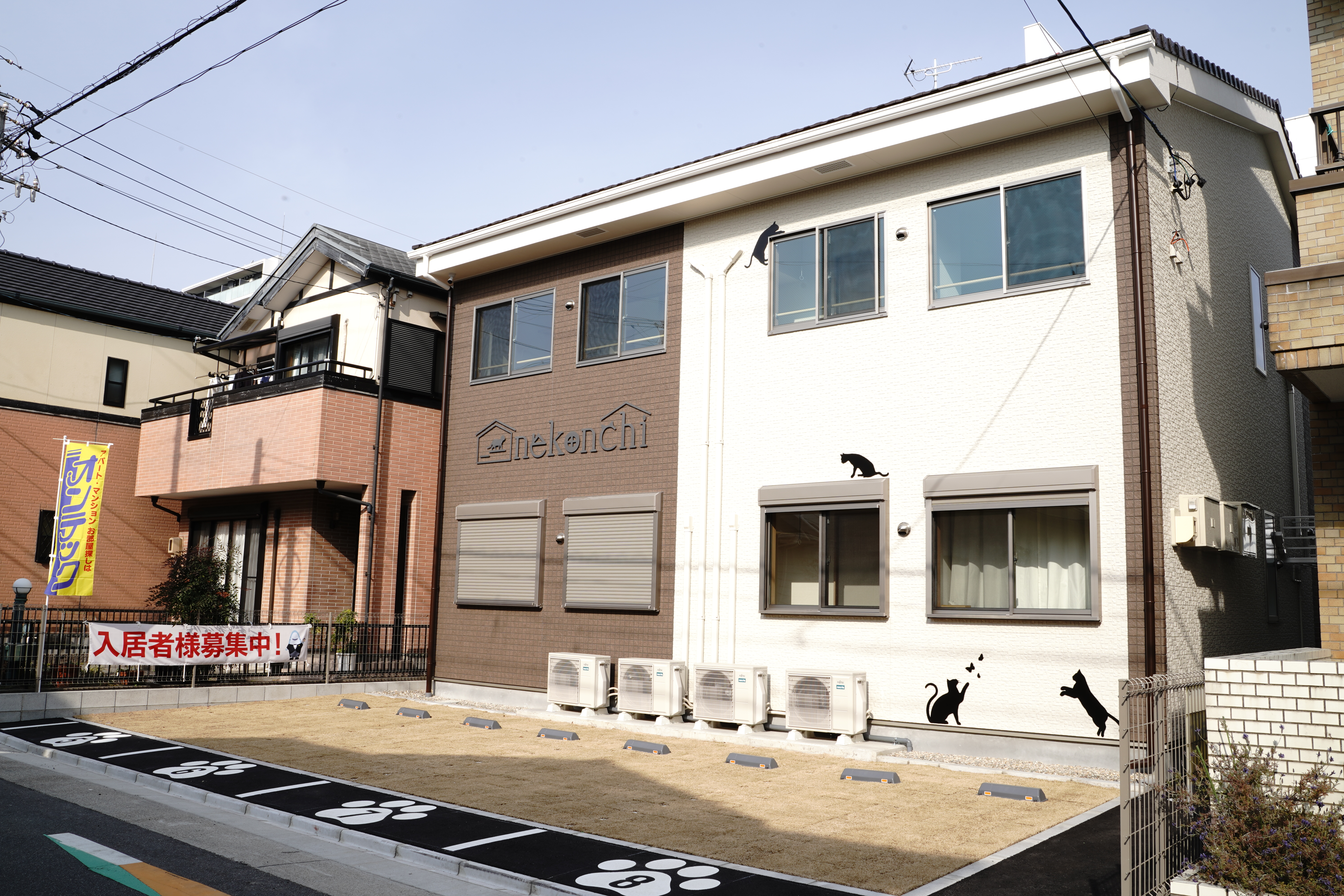 お部屋だけでなく、外観も猫ちゃんがいっぱい。