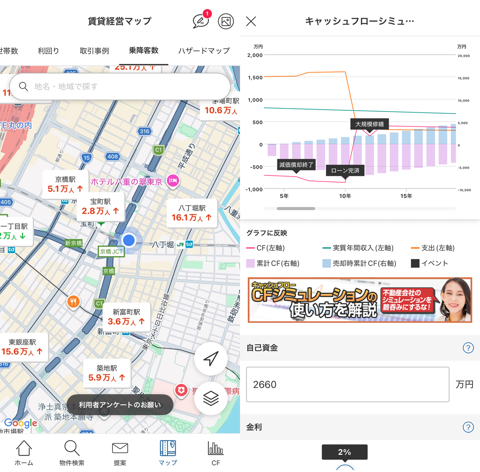 賃貸経営マップやキャッシュフローシミュレーション機能が人気