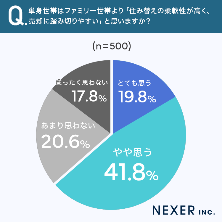 ■61.6%が、単身世帯は「住み替えの柔軟性が高く、売却に踏み切りやすい」と回答