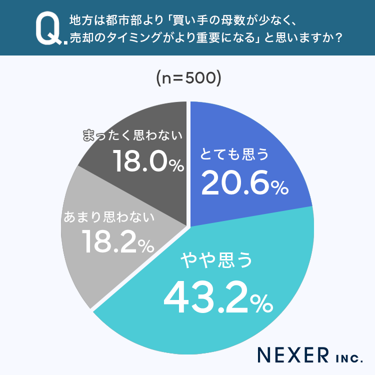次に、地方は都市部より買い手の母数が少なく、売却のタイミングがより重要になると思うかを聞いてみました。