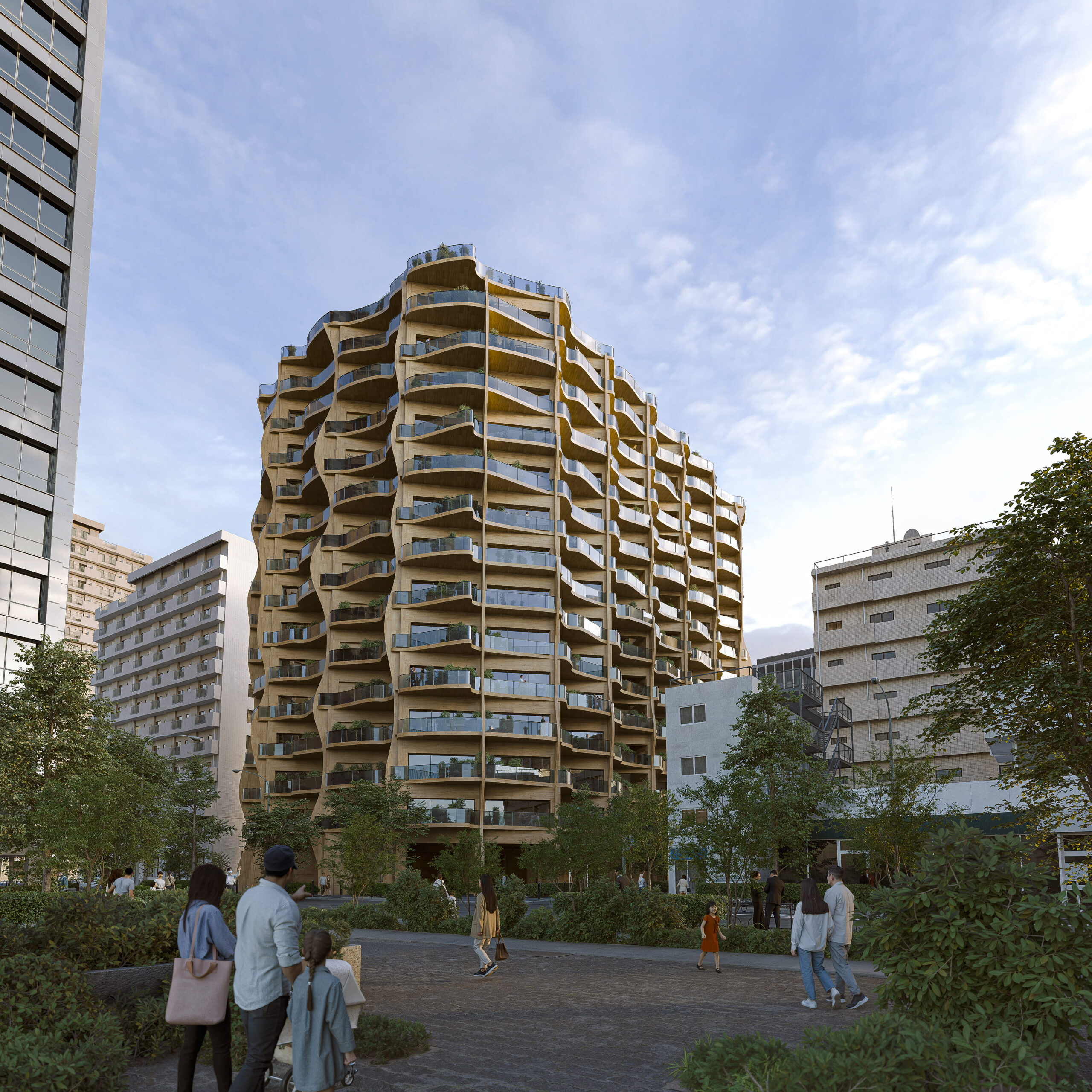 建築系スタートアップVUILD株式会社(ヴィルド。代表取締役:秋吉 浩気、以下VUILD)は、三井不動産レジデンシャル株式会社(本社:東京都中央区、代表取締役社長:嘉村 徹)がCES2026にて発表した、カーボンニュートラル社会と環境共生を目指した未来の街「サステナブルパークシティ構想」の実現に向け、地上14階建て130戸の分譲集合住宅モデルを協業し計画しました。VUILDの保有する特許技術を活用した「曲面シェルスラブ木質ハイブリッド構法」により、建設時のCO2排出量を約40%削減します。