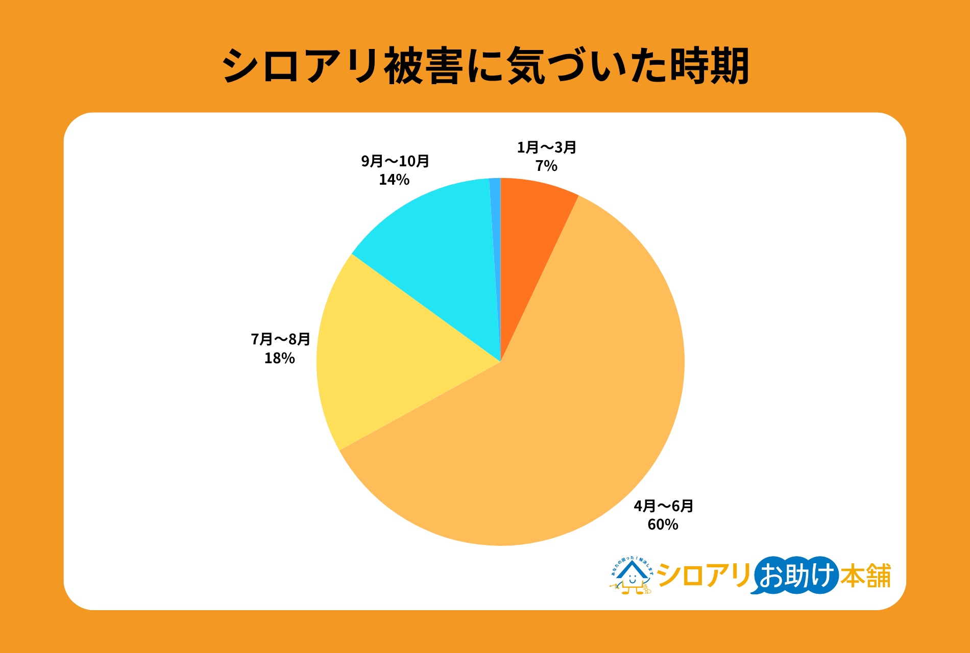 調査結果によれば、シロアリ被害に気づいた時期でもっとも多いのは4〜6月で、検索トレンドのピークと一致しています。
