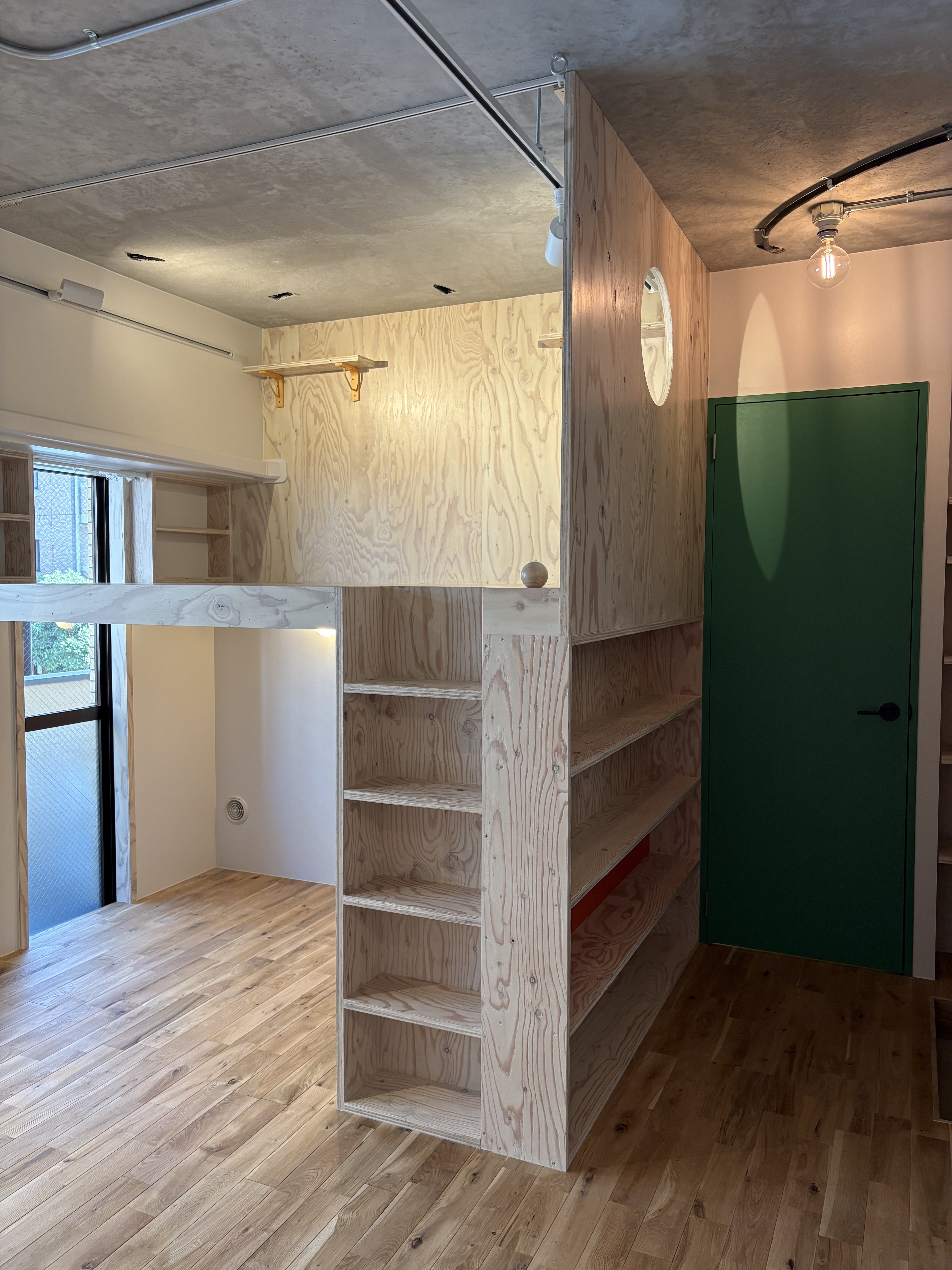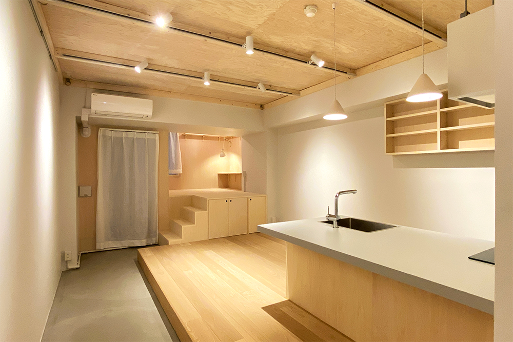 2020年にウッド×モルタルのスマートな山小屋をイメージさせるCABINシリーズをYURIEさんとリリースいたしました。前回のCABINシリーズにあたっては、「ワンルームでも広いお部屋であり、やりたいことがやれた。次は狭いということをネガティブではなく、コンパクトだからこそ、”ワクワクする””居心地の良い住処”のようにポジティブなものにしたい」とYURIEさんの想いから、新シリーズは遊び心もありながら、ロフトが作る高低差と、上下左右に広がるギミックに溢れた空間へとアップデートされたシリーズとなりました。