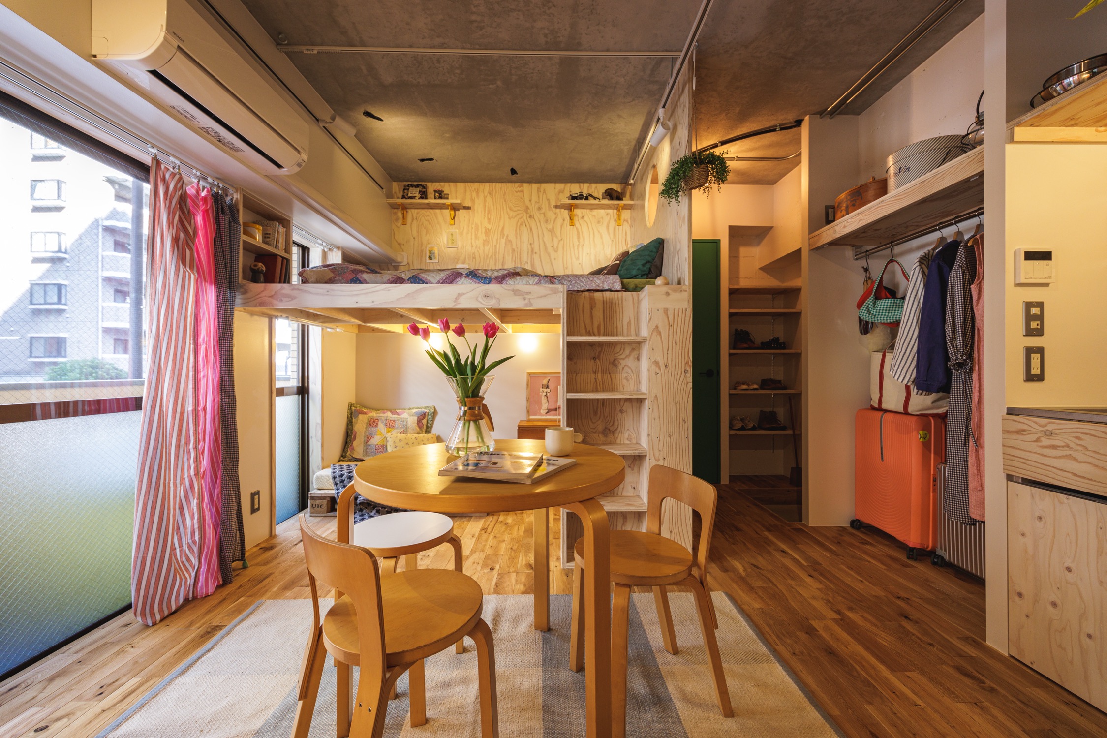 限られた広さの中にロフトスペースを設けスペースを最大限に活用し、コンパクトながらも自由度の高い暮らしを実現。暮らす人自身が自由に作り上げるお部屋は、玄関を開けた瞬間から訪れた人をワクワクさせてくれます。