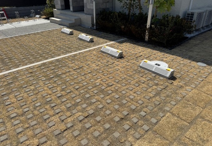カーポートの地面は緑化ブロック