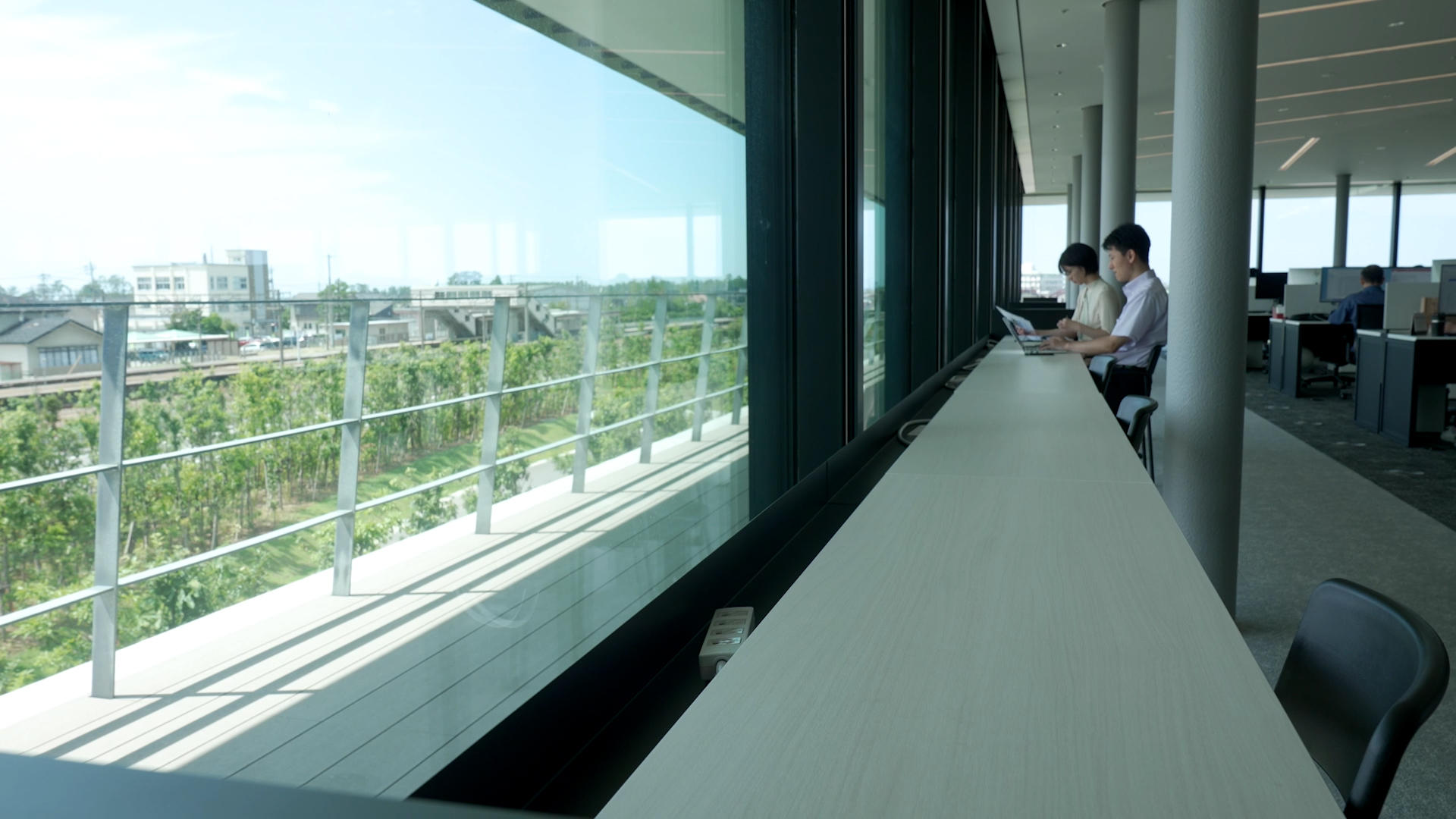 光環境においては、執務エリアの全方位に高さ2.4mのフルハイト窓や、建物中央部へ光を届けるハイサイドライトを設置し、明るさを確保しながら日中の照明電力を削減しました。これらの開口部には、YKK APのビル用窓「SYSTEMA 31」を採用。中間空気層12mmの複層ガラスを用いた断熱構造により、窓面からの熱の出入りを最小限に抑制します。スリムなフレームで自然光を最大限に取り込みつつ、空調負荷を大幅に低減させることで、『ZEB』取得に大きく貢献しました。