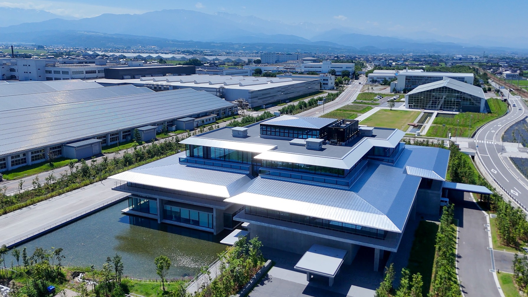 水環境では敷地内に自噴する井水を空調等に利用。黒部川扇状地の地下水が年間を通して豊富で安定した水温であるため、空調設備の熱源に井水を使用して高い省エネ効果を発揮しています。また、創エネ技術として太陽光発電を導入しエネルギーを創出。これらの取り組みにより、年間のエネルギー収支をゼロ以下に設計しています。