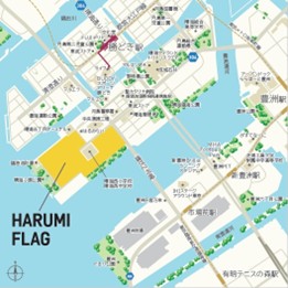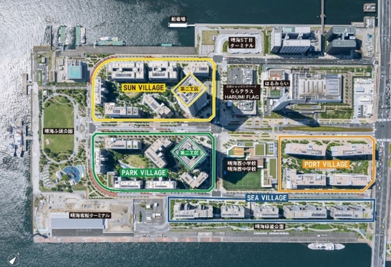 東京都施行による晴海五丁目西地区第一種市街地再開発事業における特定建築者11社により、開発区域のタウンネームを「HARUMI FLAG」として開発が進められました。約13haの広大な土地に、5,632戸の分譲住宅・賃貸住宅と商業施設の計24棟が整備されています。加えて、保育施設・介護住宅・シェアハウスなどの開設により、多様なライフスタイルを受け入れる街づくりを行いました。分譲住宅は全住戸引渡しを終え、街に賑わいが生まれています。選手村のレガシーを継承し、官民連携のもと、街区と道路・公園などを一体的に整備して美しい街並みを実現した、これからの都市生活のフラッグシップとなる街。それが「HARUMI FLAG」です。